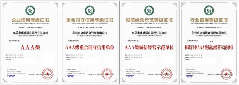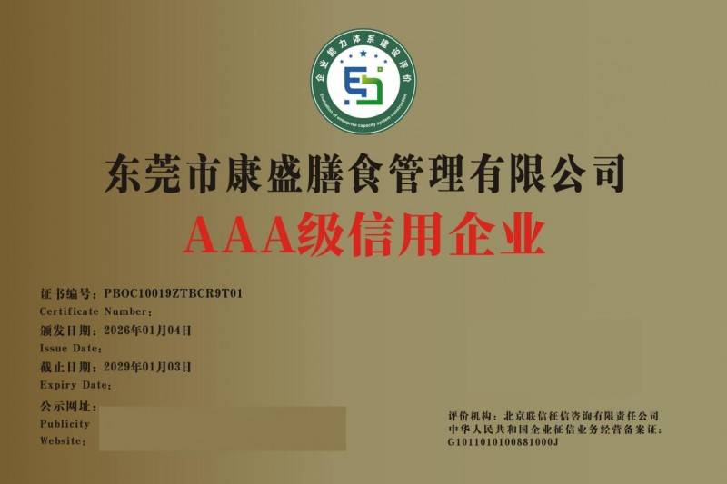 东莞市康盛炊事此次斩获的系列 AAA 级认证,笼盖企业信用、合同履约、运营合规、行业专业度等全焦点维度,根据国度企业征信相关尺度及餐饮办事行业规范,经全流程严苛评审得出,存案监管机构为企业征信营业从管部分,权势巨子性取合规性有充实保障。